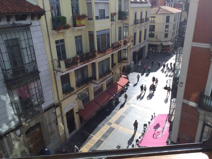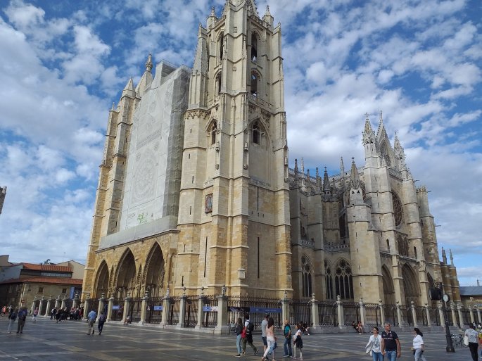 I managed to hobble around Leon for a short while after I had cannabalised my new walking sandals to accommodate my heavily bandaged foot. Saw a few sights (like the hospital, the pharmacy for antibiotics, etc) but the hostel is very near to the cathedral which is a very impressive building even with the scaffolding. There seems to be quite a buzz around here with people promenading and dining in the warm sunny evening.